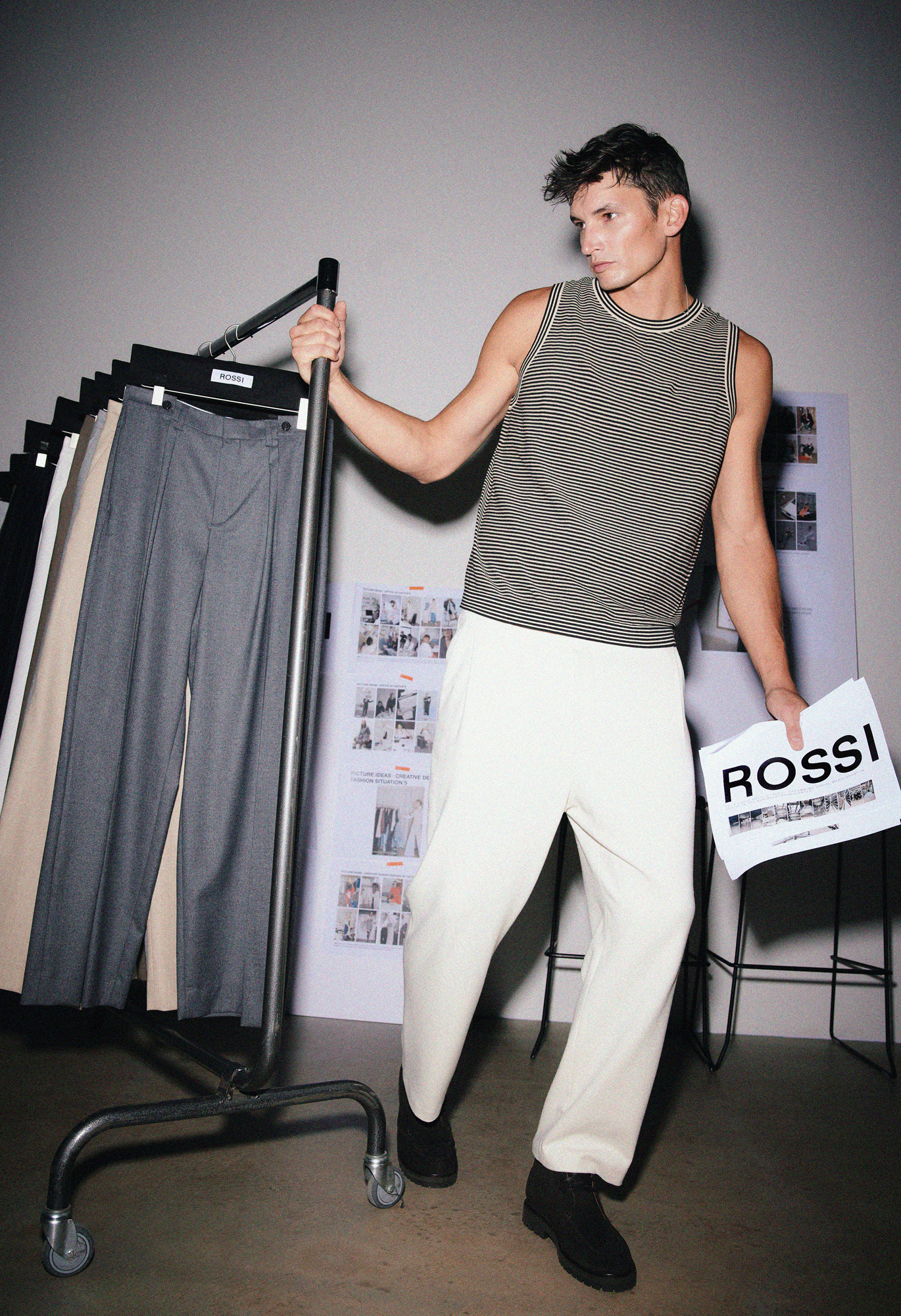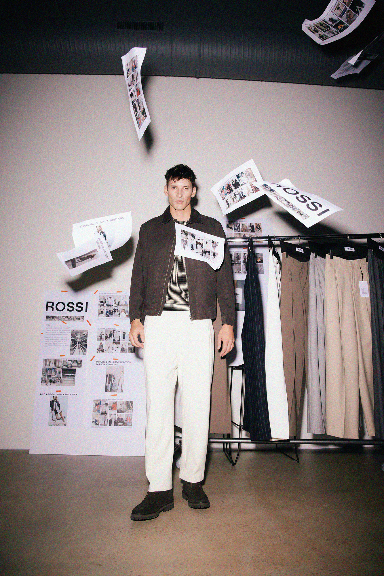 Welcome to our ROSSI Headquarter – the place where creativity becomes reality and our styles are getting ready for you. Between fabric rolls, our atelier and the vast pants warehouse, we captured the highlights of the season in the unmistakable ROSSI vibe – surrounded by fabrics and endless rows of pants.